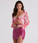 Bloom with beauty in this alluring floral crop top! It features a sweetheart neckline with a twist-front design. long balloon sleeves. a smocked back design. and a fitted. cropped hem. The airy chiffon fabric features a pretty floral print pattern. Style with a mini skirt and strappy mules for a spring date night!