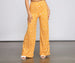Keep it sensational in floral pants this season! The pants feature a high-rise waist. a ditsy floral print. and a wide leg hem. Complete look with the matching crop top.