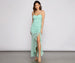 • Flowy fit. thigh-high slit. ruffle details