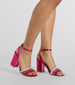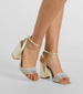 Step out on the scene looking fly and glossy in these metallic block heels for parties. prom. or going out! These bold statement heels feature a square toe. multi-colored rhinestone strappy design. and metallic-coated faux leather material. The adjustable ankle strap with buckle closure ensures a perfect fit. Complete the look with a rhinestone purse for extra glamour!