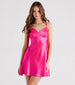 This satin slip dress will be a forever and timeless staple! The mini dress features a sleeveless V-neck. adjustable spaghetti straps. a flattering A-line silhouette and short hem on smooth non-stretch satin fabric. Complete the look with the matching top and heels for a cocktail reception.