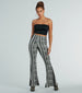These boho pants are for the free-spirit chicks who want to look trendy during festivals. concerts. or at parties! Made from a soft brushed knit stretchy fabric with a bohemian-inspired print. they feature a flattering high-rise elasticized waist for comfort. a hip-hugging fit. and a flared hem. Style with a cute crop top!
