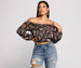 Go boho chic in this top that brings those carefree vibes. Step out for brunch in this top that features an elastic off the shoulder neckline. long sleeves. and a pretty paisley print. Style your top with high waist skinny jeans.