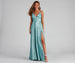 Gorgeous and oh-so-glamorous. the Freya glitter formal dress will sparkle up the dance floor. She features a sleeveless deep V-neckline with a padded bust. adjustable spaghetti straps for a customized fit. a flattering high wide waistband. and a floor-length A-line silhouette with a chic front slit. The glitter knit fabric includes a full knit lining. Complete your look with rhinestone duster earrings.
