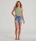 Grab your bestie and throw on these denim shorts for a fun summer adventure! Made from a medium wash fabric with a cool vintage-inspired color fading. these jean shorts will be essential all season. They feature a flattering high-rise waist. distressed accents for a major trend factor. and an edgy cut-off hem. Complete the look in a cute crop top and sandals!