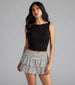 So fun in stripes. this bold ruffled mini skort will turn heads with every wear!