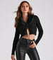 Slay your outfit of the day with this cropped cardigan! It features fitted long sleeves. a faux fur removable collar with buttons. tie-front closure. and a slit on stretchy rib-knit fabric. Style with faux leather pants to complete the look!