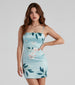 This dress is in full bloom! Show up to the garden soiree in this satin mini dress featuring a square neckline. customizable spaghetti straps. a form-fitting silhouette and a delicate cherry blossom floral print. Complete the look chic sandals.