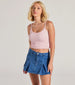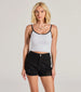 Get the perfect laidback and cute vibes in this crop tank top perfect for layering or wearing by itself. The top features a flirty scoop neckline with a bow inset. adjustable spaghetti straps for a customizable fit. and a fitted crop hem that flaunts your figure. Complete the look with trending high-rise jeans.