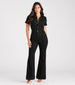 Give your closet a trendy upgrade in this essential denim jumpsuit perfect for hitting up the farmer's market or grabbing brunch with friends! It features short sleeves. a collar neckline. button-down front closures. four-pocket styling. belt loop accents. and a hip-hugging flare-leg silhouette. Complete the look in peep toe booties.