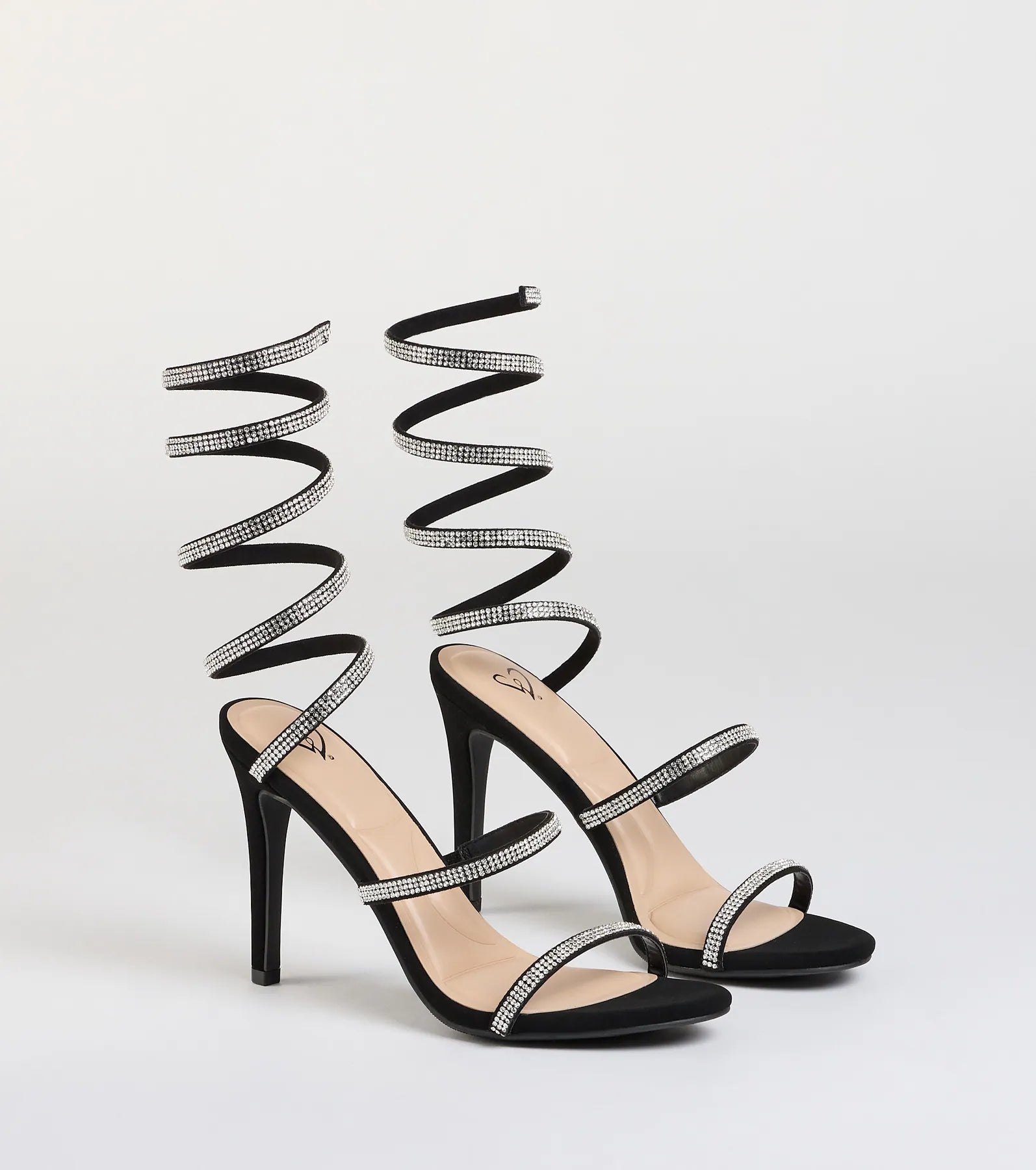Bring the girly energy in these rhinestone spiral heels to your next formal event or dressed-up date night!