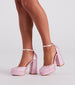 Channel those early 2000s vibes in these fab platform heels that will give that glam diva energy! They feature a closed square toe. a thin adjustable ankle strap. a closed back. a chunky platform. and a tall block heel. The all-over sparkly mini rhinestone embellishments will step up the glam factor. Style with a bodycon dress and hoop earrings.
