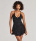 Bring a glam drama to the party in this rhinestone mesh mini dress flaunting a plunge V-neckline and a partially open back to show some skin. Pair with heels.