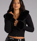 Serving cozy glam in the chicest way. this rib knit cardigan levels up your cold-weather looks with plush. removable faux fur trim at the collar and cuffs. The fitted silhouette and button-up front make it effortlessly polished—perfect for pairing with denim. faux leather. or full-on sparkle.