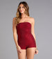She's hot. she's sparkly. she's dangerously irresistible. This strapless rhinestone romper brings the heat with a sleek bodycon fit—pair it with attitude for the ultimate night out.