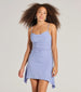 This pretty glam glitter knit mini dress features a sleeveless sweetheart neckline with a draped cowl overlay for a soft touch. ruched side seams. and a short asymmetric hem with an effortless flowy silhouette. Perfect for styling with metallic heels for prom.