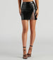 If you love the glitz and glamorous things. this faux leather mini skirt is just the ticket! It features a sleek high-rise waist. a bodycon silhouette. and a front slit with rhinestone fishnet trim. Complete the look in a chic satin top for drinks with the girls!