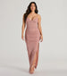 Spark a shimmering rarity in the Patsy corset glitter mesh formal dress at upscale birthdays or prom! Made from glitter mesh fabric. this dress exudes luxury and sparkle. The V-neckline and adjustable spaghetti straps flatter your figure. while the padded bra cups provide comfort and support. The sheer corset bodice with flexible boning and side ruched seams creates a slim silhouette. accentuated by the high side slit and long length hem. Complete the look with a clutch.