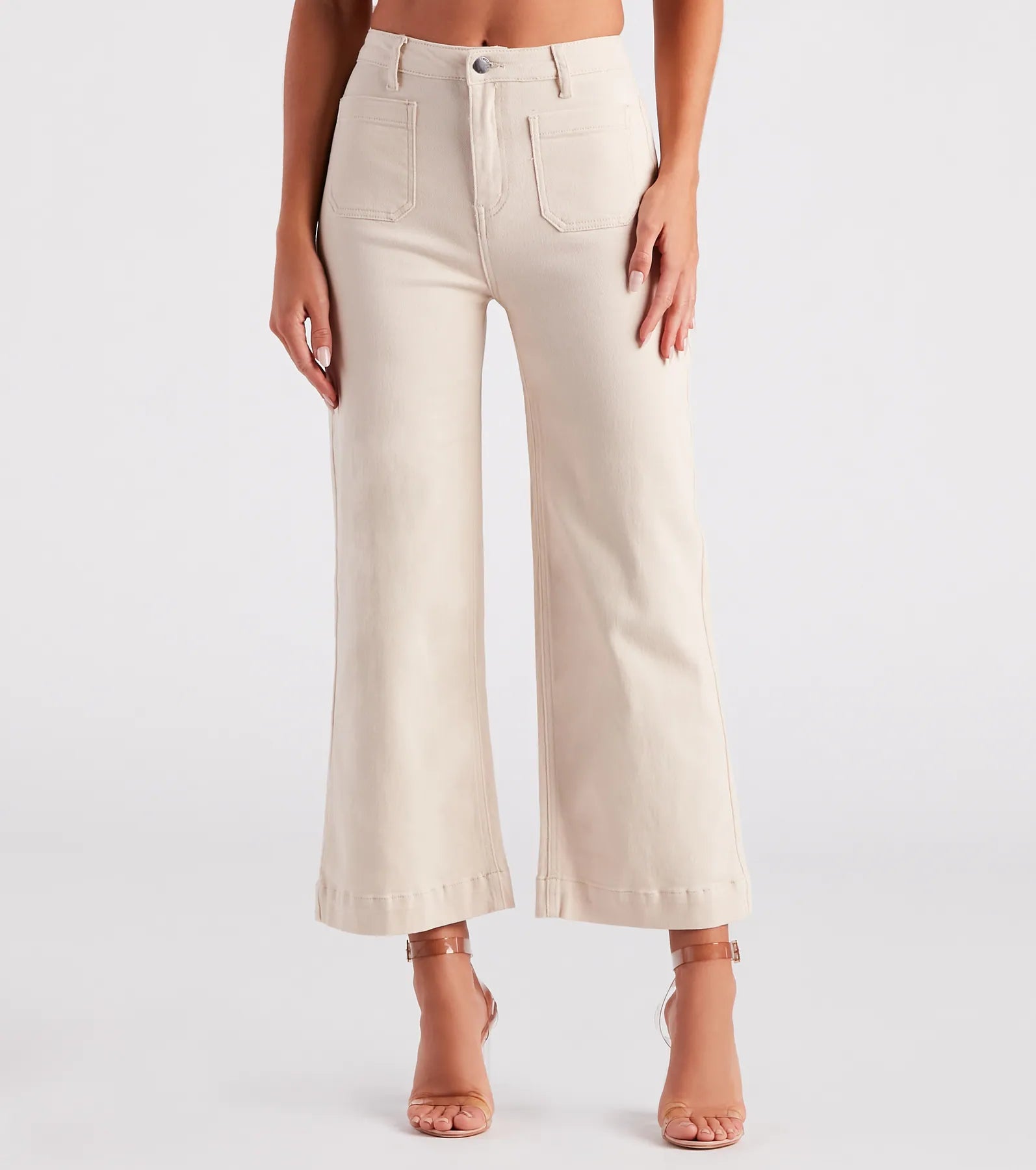 Unveil your fashion go-getter status by styling these denim jeans into your weekly rotation! They feature a flattering high-rise waist. trendy front pockets. and a wide-leg silhouette. The jeans are composed of premium denim fabric with minimal stretch. Complete the look in simple sandals for hanging out with friends!