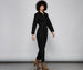 Go with the flow in a jumpsuit that is part casual. part chic! The jumpsuit features a collared neckline. a multi-button down front. long sleeves. an elastic-smocked waistband. hidden side pockets. and a straight leg fit. The jumpsuit is composed of a woven twill knit fabric that offers a form hugging fit with a moderate stretch. Complete look with ankle booties and sleek hoops.Â