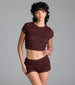 Earn style cred in this lace crop top with frilly ruffles and a fitted hem. Pair with the matching shorts.