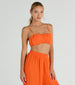 Radiate your gorgeous allure in this sultry ruched chiffon bra top! Designed with an airy sheer chiffon fabric with a front knit lining for coverage. this bra top is perfect for looking sunkissed this season. It features a sleeveless subtle sweetheart neckline. ruching at the bust with padding for support. and adjustable spaghetti straps for a customized fit. The smocked back design offers added stretch. while the ultra-cropped fitted hem creates a snatched silhouette. Complete the look with the matching palazzo pants!