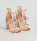 Enchant them all when you step into the room in these gorgeous glam gemstone metallic heels. They feature an open almond toe. clear PVC straps with cutout detailing. sparkling chunky gemstone accents in an intricate floral design. a back zipper closure. a block heel. and a fabulous metallic sheen. Style with a rhinestone hair clip so you're shining from head to toe!