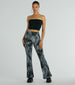 Got the blues? Refresh your mood in these denim pants perfect for achieving a stylish look while staying comfy! They feature an elasticized high-rise waistband. a hip-hugging fit. and a flared hem on stretchy mesh fabric with a denim jean print. Complete the look in a basic tee for a concert!