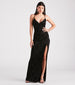 Sultry yet regal. the Gretchen formal dress will have you feeling like a modern-day princess! Captivate the room at banquets. school dances. or dressy celebrations. She features a sleeveless surplice V-neckline. spaghetti straps that crisscross in the back. and a side pleated seam that creates her slim-fitting silhouette with a wrap-style high front slit and long hem. The formal dress is composed of a ponte knit fabric with a stunning flocked velvet pattern and minimal stretch. Complete the look in this long dress with a glamorous tiara and choker necklace.