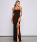 Lace-up in a formal long dress that brings the wow factor to your evening! Gretchen features a sleeveless square neckline. sleek spaghetti straps. lace-up straps at the back. and a high-side slit. The dress is composed of a smooth knit fabric that offers a form-hugging fit with a moderate stretch. Complete look with rhinestone heels and a metal cuff.