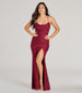 This sleeveless formal dress features a halter sweetheart neckline with lace sequin padded bra cups. a high front wrap slit. and a stunning mermaid floor-length silhouette. Perfect for the school dance or any formal event.