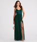 Create a breathtaking entrance in our Haisley dress as you captivate with magical tulle and stunning satin! She features a sleeveless satin bodice. plunge V-neckline. adjustable spaghetti straps that shape the strappy back design. and an airy A-line tulle silhouette with a floor-length hem and high-front slit. The formal dress is composed of a stretchy lined satin and tulle fabric. Complete the look with rhinestone earrings and a clutch for a formal dinner party or wedding!