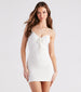 You'll be happily in love with how stunning you look in this sleeveless mini dress for a graduation or birthday brunch! It features a scoop neck with a flirty bust tie. spaghetti straps. and a bodycon silhouette on rib knit fabric with a stretchy knit lining. Complete the look in trendy wedges.