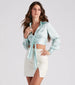 You'll be ready for happy hour with the girls in this sleek satin cropped blouse! It features a collared V-neckline. a tie-front. button-down design. long sleeves. and a cropped. form-hugging fit. Style with a mini skirt and heels!
