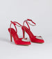 These satin pumps will make your heart sing! They feature a closed pointed toe. a rhinestone-embellished heart. a stiletto heel. open ankle with an adjustable strap. and buckle closure. Complete the look with a glam hair accessory for dressy events!