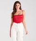 Bring the heat to your night-out festivities in this glimmering rhinestone satin corset top! It features a sleeveless square neckline. adjustable spaghetti straps for a customized fit. a corset-designed bodice with flexible boning inserts to provide structure. and a fitted. angled. and cropped hem. The woven satin fabric features front mini rhinestone embellishments for a sultry sparkle! Complete your look with a faux leather mini skirt and platform heels.
