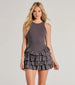 This adorable skater dress features a ribbed knit top with a sleeveless crew neckline and tank shoulder straps. a trendy V-shaped drop waist. and a tiered ruffled chiffon A-line silhouette for a flirty accent. Style with mules for a date night or sneakers to keep it casual!