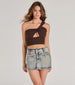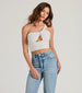 This iconic crop top was here to stay and slay your 'fits! Made with a stretchy ribbed knit fabric. it features an asymmetric one-shoulder neckline with a tank strap. a trendy twist-front design and sultry center bust cutout. and a cropped hem with a form-hugging fit for a snatched look. Style with high-rise jeans and sneakers for a cute and casual vibe!