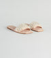 You'll truly covet these faux pearl sandals all season long! They feature a square toe. a wide single strap with faux pearls. a quilted faux leather footbed. a flat sole. and slide-on-and-off styling. Complete the look in a trendy crossbody bag.
