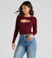 Coming up with a plan for everyone to see you in this sweater bodysuit can definitely be arranged! The rib knit bodysuit top features long sleeves. crew neck. front keyhole cutout. and a thong cut bottom with dual snap-button closures. Complete the look in high-rise jeans.