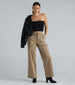 These wide-leg carpenter pants will get you that trendy street style you've been seeing all over your feed. They feature a high-rise waist. two large front pockets. two back pockets. a utility-style side strap. a wide-leg silhouette. and an overall relaxed fit. The lightweight cotton-blend woven fabric has a minimal stretch for comfortable wear. Pair these carpenter pants with a graphic tee and sneakers for a casual-cool everyday look.