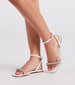 Treat your feet to a hint of radiance with these flat sandals - perfect for brides. graduates. or dressy parties! They feature a square toe. a twisted toe strap with rhinestone embellishments. and an ankle strap with buckle closure on faux leather material. Complete the look with a glam ring set.