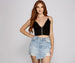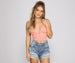 Get hooked to this cute crop top that draws you in with stylish deets! The crop top features a sleeveless V-neckline. spaghetti straps. multi-hook and eye front closures. and a cropped hem. The top is composed of a ribbed knit fabric that offers a form-hugging fit with plenty of stretch. Complete the look with a denim skirt and mules.