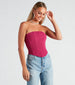 Hello hot stuff! You'll look absolutely gorgeous in this sheer mesh bustier! It features a strapless neckline. flexible boning to provide structure. a back zipper closure. and a mid-length hem with a form-hugging fit. Style with faux leather pants and clear heels for a night out.