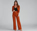 Channel a glam look with belted pants that bring a major flare to your outfit. The pants feature a high-rise waist. a belted accent with a metal buckle. a straight leg with a flared hem. The pants are composed of a crepe fabric that offers a form hugging fit with a moderate stretch. Complete look with the matching blazer.Â
