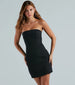 This pinstripe mini dress is sure to impress! Featuring a strapless foldover neckline with non-slip grip lining. a stretchy smocked back. form-hugging silhouette. and a flirty front slit along the hem. Complete the look in a cropped blazer for a posh vibe!