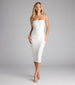 Get dressed to impress in this bodycon midi dress perfect for brides-to-be or a dressy date night!