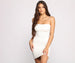 Throw on this basic mini dress and let the good vibes flow! This knit dress is perfect to dress up or dress down for your next date night or for GNO with the squad. The dress features a trendy square neckline. sleek bungee straps. and a mini-length silhouette. Dress up with mules or keep it casual in sneakers.