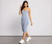 You'll be totally in it to win it in this adorable knit midi dress! It features a double-lined knit fabric and a mid-length. curve-hugging silhouette. Wear this dress with chunky sneakers for an adorable everyday look.