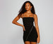 Shine on the spotlight in a mini dress that commands attention! The dress features a sleeveless square neckline. adjustable spaghetti straps. an asymmetrical rhinestone trim. and a mini-length silhouette. The dress is composed of a lined crepe fabric that offers a form hugging fit with a moderate stretch. Complete look with rhinestone heels and door knocker earrings.